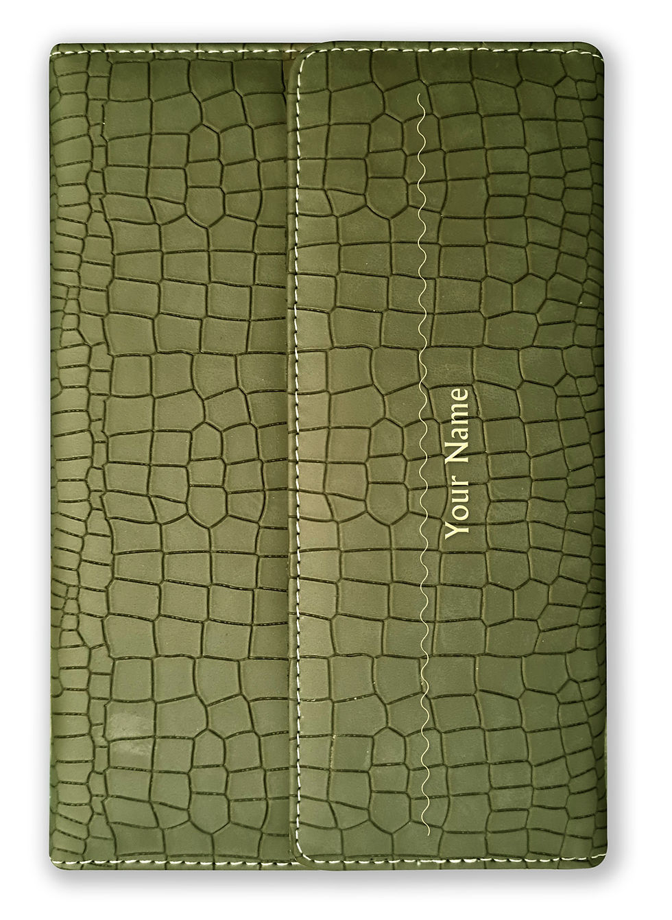 Personalized Croc Pattern Olive Green Leather Cover Notebook/Diary