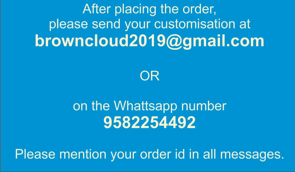 - If you wish to see the preview of the product after customization, please send us a request on browncloud2019@gmail.com along with the order id.