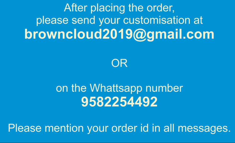 - If you want to add image to your Products, please send the Photographs along with your order id on browncloud2019@gmail.com