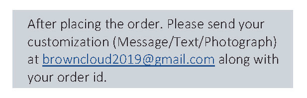 - After placing the order, send your customization and style preference along with order id to browncloud2019@gmail.com