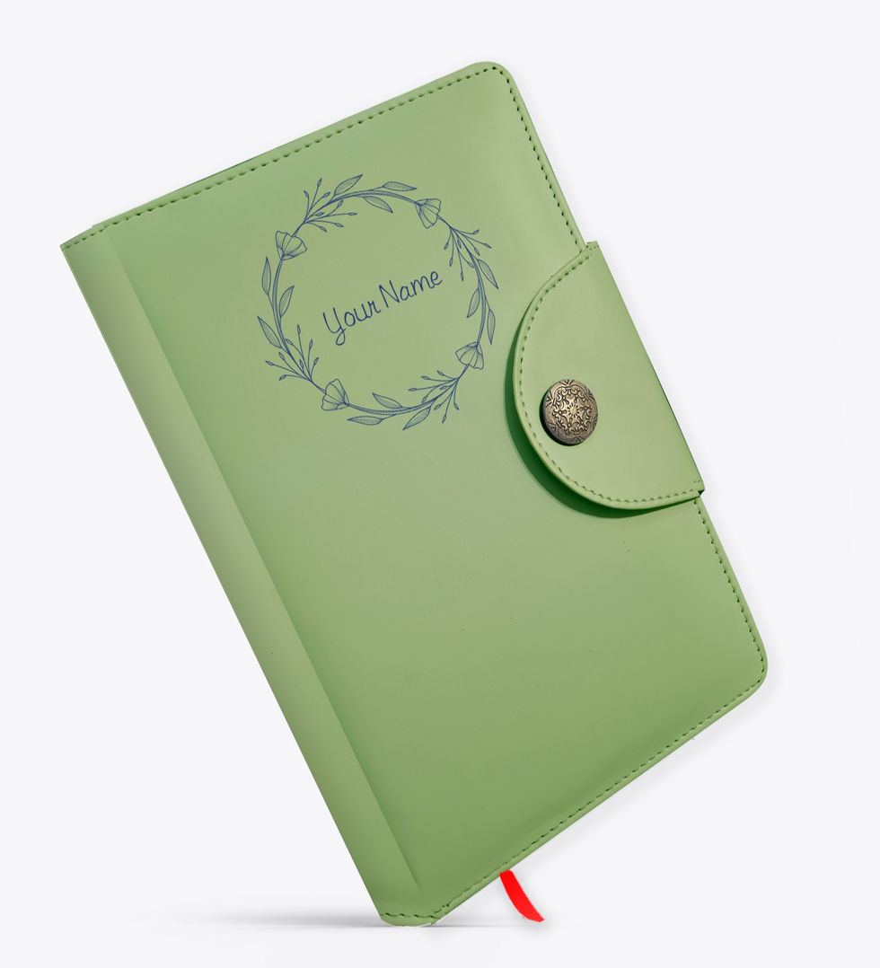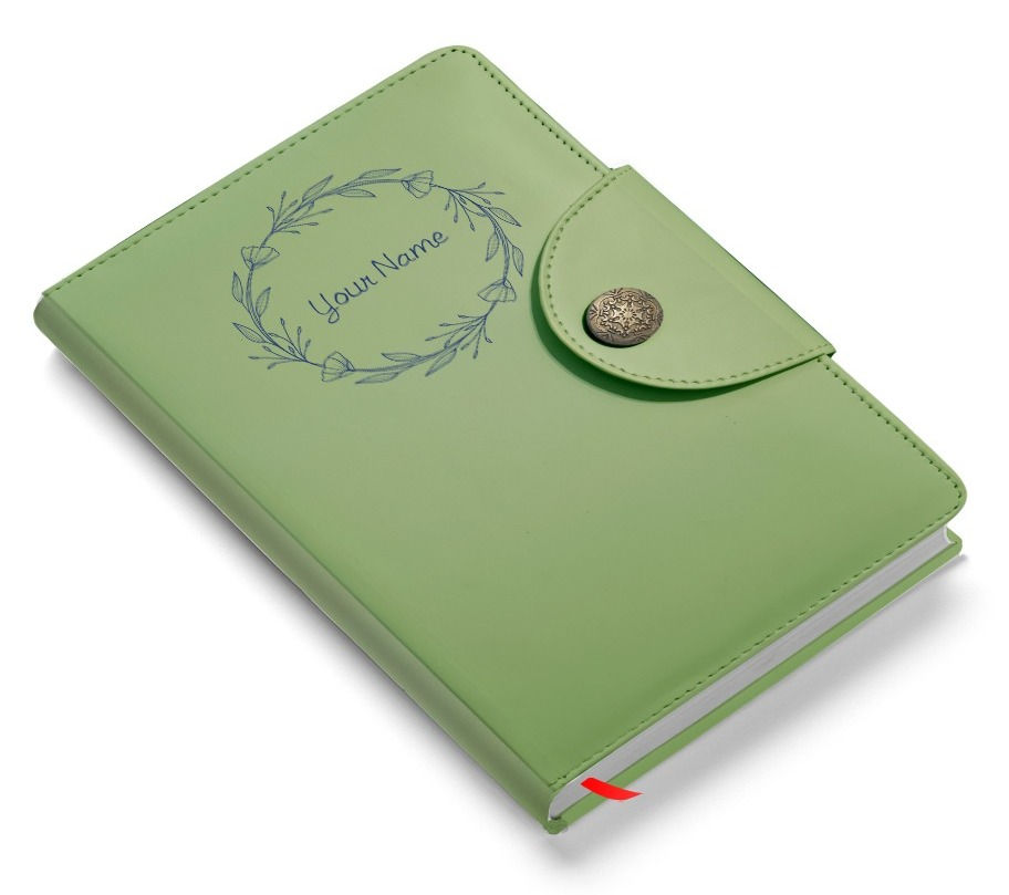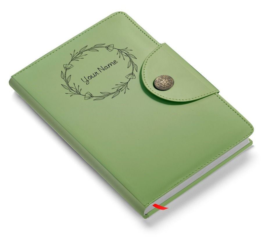 - Customized Olive Green Soft Leather Hardbound Diary, with Bookmark