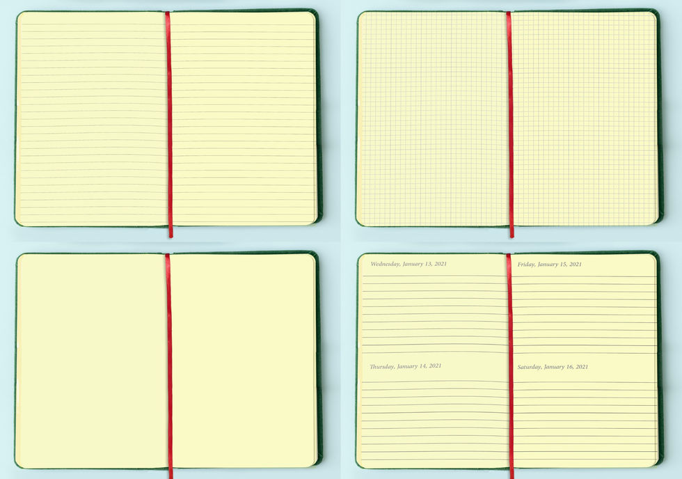 - Available in four Styles (a) Blank (b) Ruled (c) Grid (d) Dated