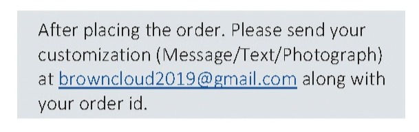- If you wish to see the preview of the product after customization, please send us a request on browncloud2019@gmail.com with the order id.