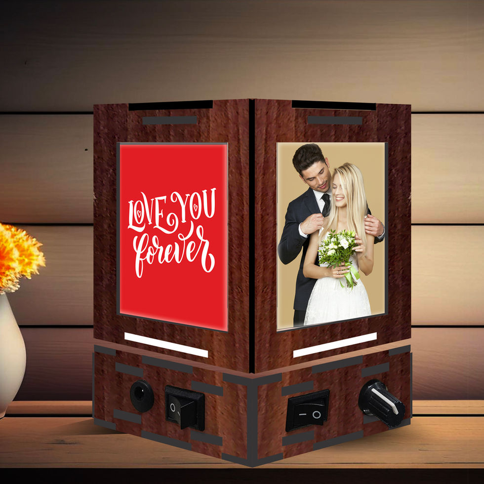 Personalized Pentagon Wooden Rotating LED Lamp Gift for Valentine Day
