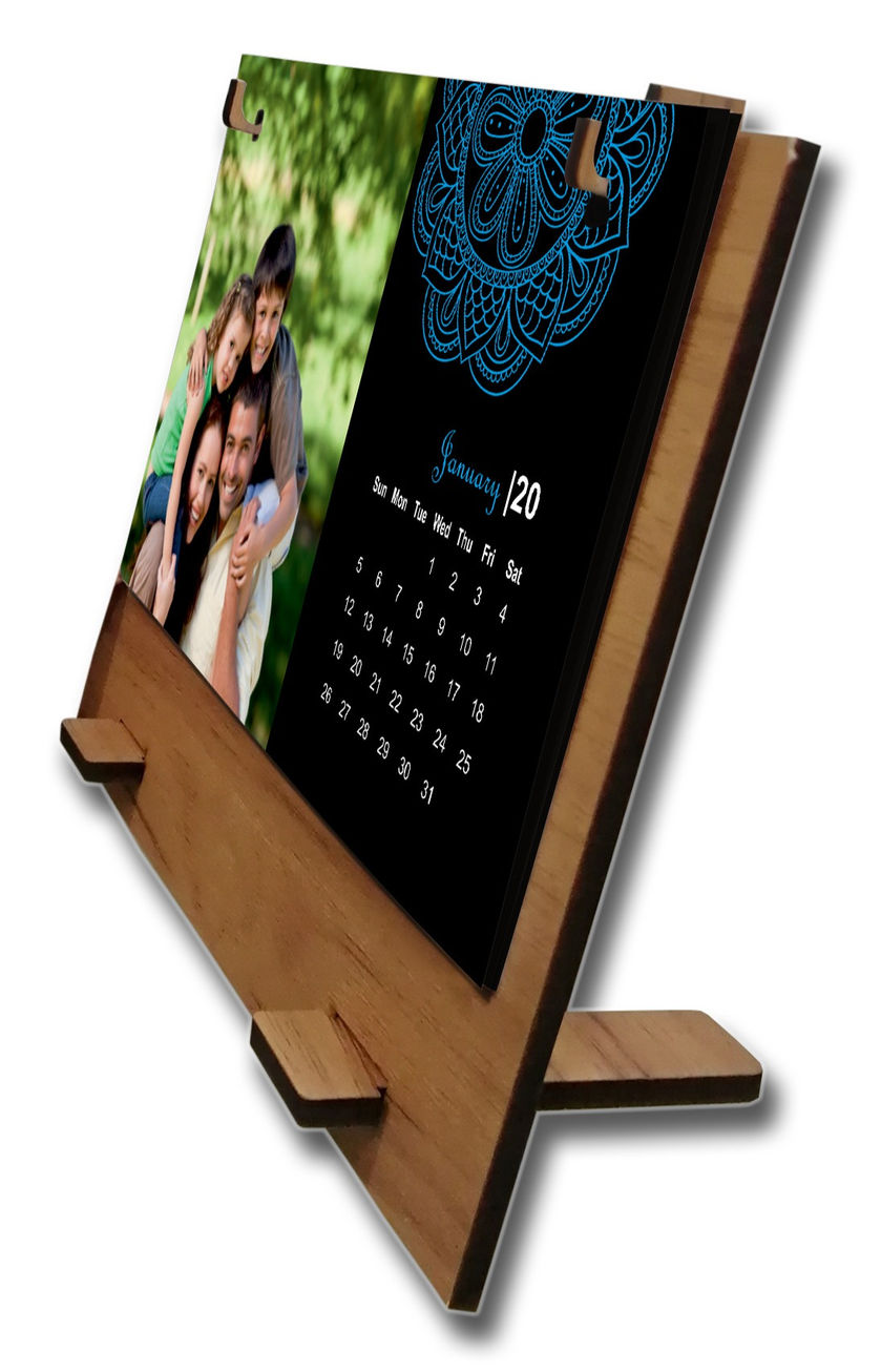 - Exclusive / Elegant Customized Desk Calendar on Both Sides Laminated MDF Stand.