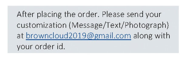 - If you wish to see the preview of the product after customization, please send us a request on browncloud2019@gmail.com with the order id.