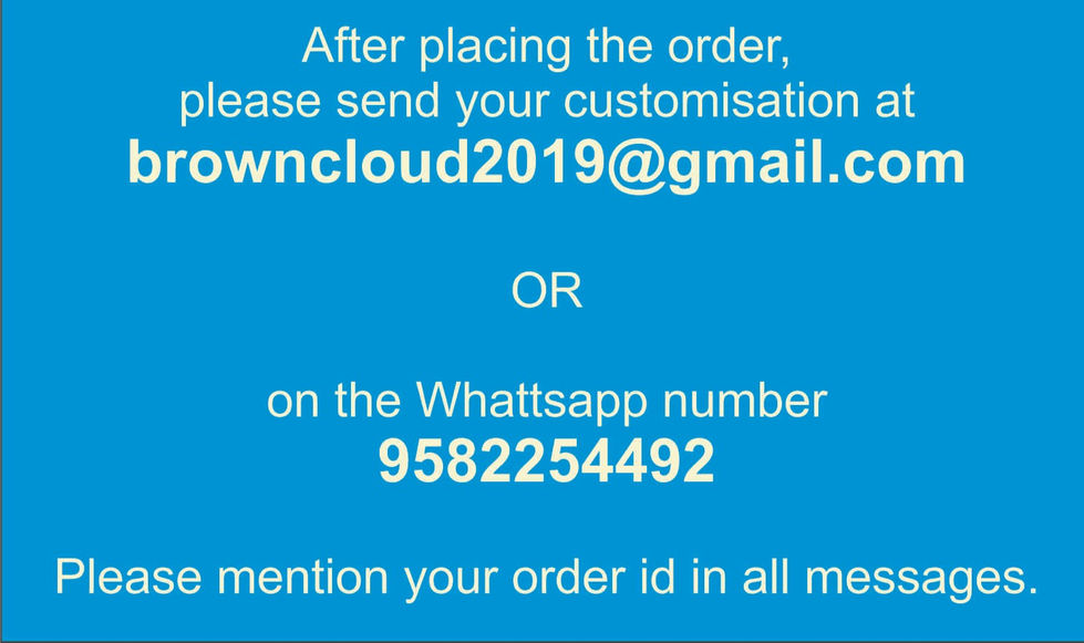 - If you wish to see the preview of the product after customization, please send us a request on browncloud2019@gmail.com with the order id.